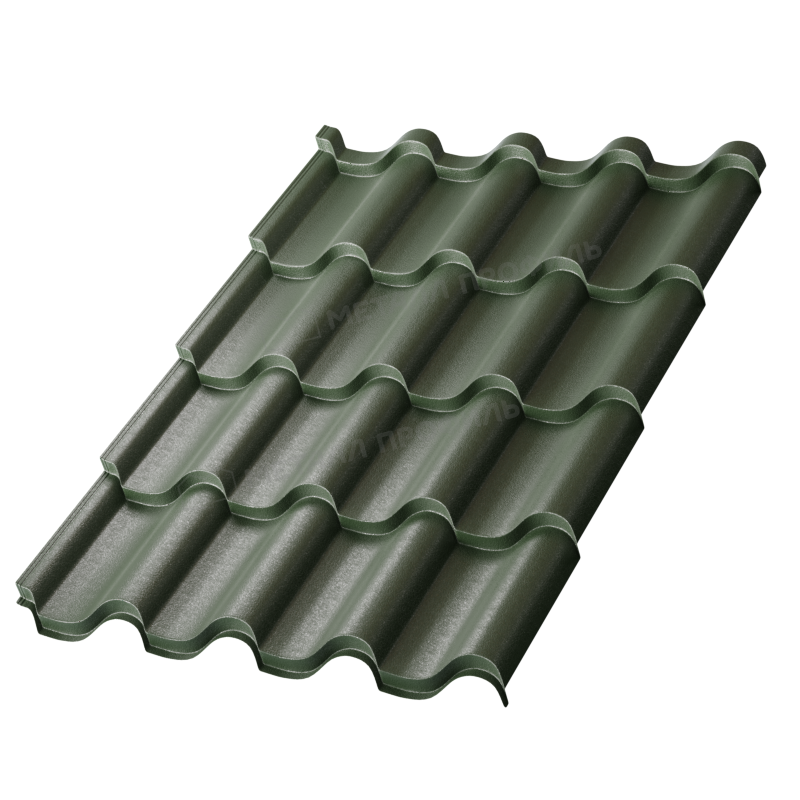 Металлочерепица Металл-Профиль Монтерроса-X 0,5 VikingMP® E RAL 6007 Бутылочно-зеленый - это качественный и надежный материал для кровли, который обладает превосходными характеристиками. Изготовлена из высококачественной стали, покрытой специальным полимерным слоем, что делает ее устойчивой к коррозии и воздействию атмосферных условий. Благодаря своей форме и размерам, металлочерепица легко монтируется и обеспечивает надежную защиту от влаги, снега и ветра. Бутылочно-зеленый цвет придает кровле эстетическую привлекательность и позволяет гармонично вписаться в любой архитектурный стиль. Этот продукт отличается долговечностью и низкой стоимостью эксплуатации, что делает его идеальным выбором для кровли вашего дома или коммерческого здания.
