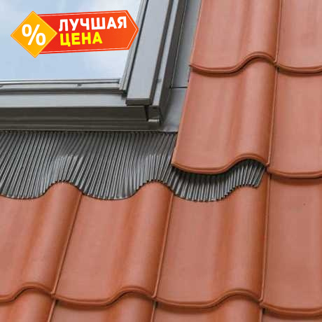 Обеспечивает водонепроницаемое соединение окна с кровлей из металлочерепицы, цементно-песчаной черепицы, керамической черепицы и других кровельных материалов с высотой профиля до 120 мм.