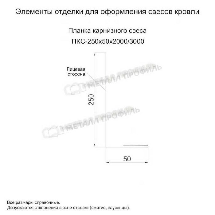 • Планка карнизного свеса 250х50х2000 (PURETAN-20-8017-0.5) не ржавеет.