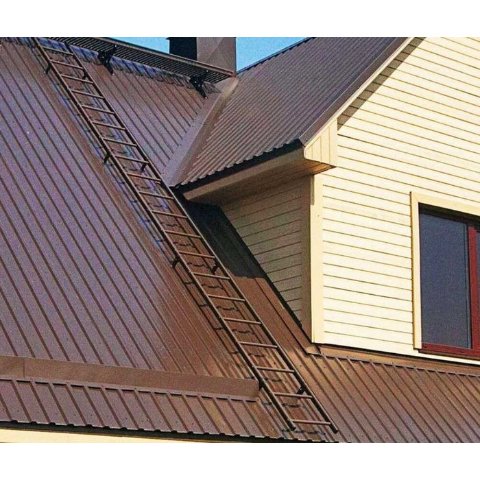 Толщина листа составляет 0,45 мм, что обеспечивает надежность и долговечность конструкции. Цвет RAL 8017 Коричневый шоколад придает зданию элегантный и стильный вид.