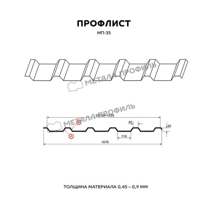 Профлист Металл-Профиль МП-35 NormanMP 0.5 мм RAL 3011 Коричнево-красный - это качественный и надежный материал для строительства и отделки.