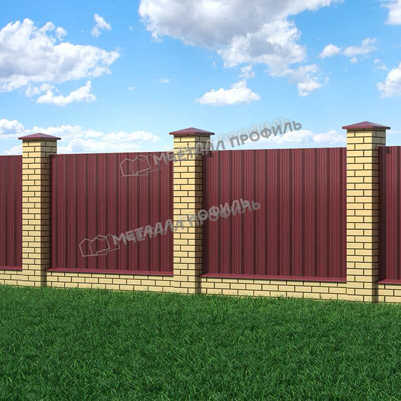 Профлист изготовлен из металла толщиной 0.65 мм, что обеспечивает ему прочность и долговечность. Он покрыт полиэстеровой краской RAL 3005 Красное вино, которая придает ему эстетичный и стильный вид.