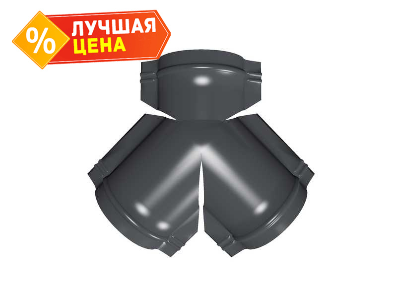 Тройник Y малого конька полукруглого GreenCoat Pural BT, matt с пленкой RR 23 темно-серый (RAL 7024 мокрый асфальт)
